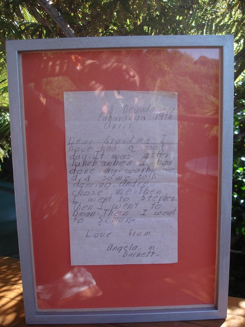 I wrote this when I was seven; nearly Bob’s age. It makes me laugh. Didn’t I have anything else to tell Grandma and did I have to mention all four boys?